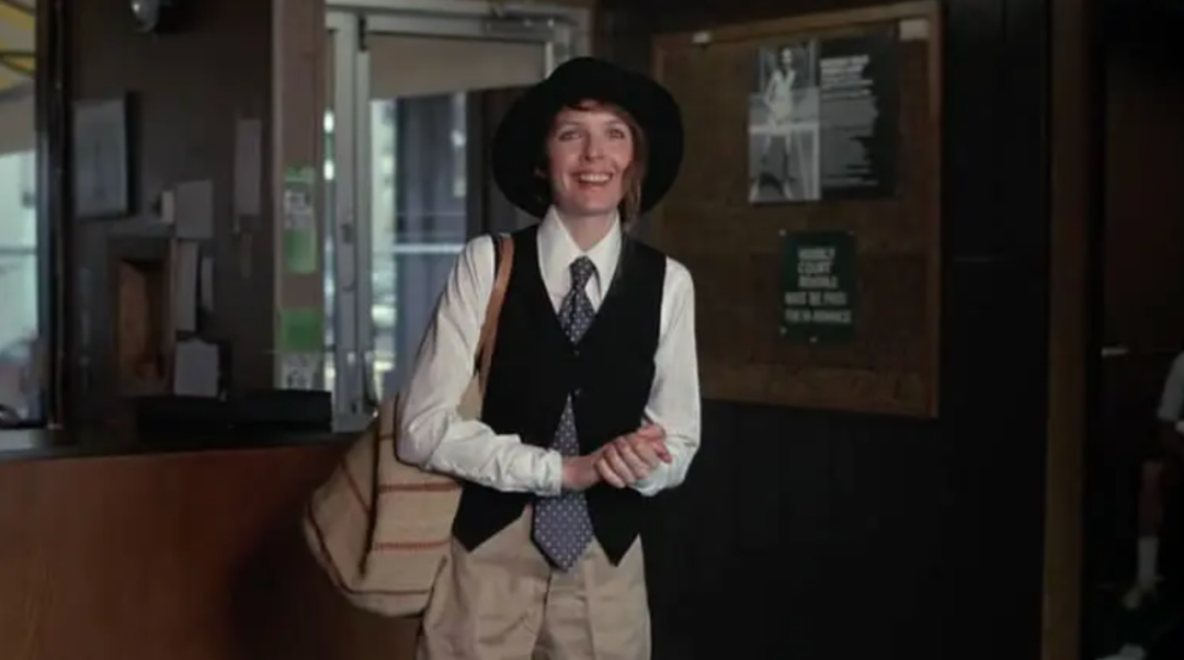 我认为黛安·基顿最令人印象深刻的——除了她那为她作为电影明星的特质增添色彩的非凡着装风格外——是她从未逃离这个行业,即使这个行业正在背弃其女性。在1970年代,她将一个轻喜剧演员和百老汇明星的职业生涯转变为银幕天真少女的生活,轻松地与阿尔·帕西诺、马龙·白兰度和约翰·凯泽尔等重量级人物共享影片。